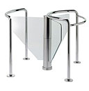 Se diferencia de los demás modelos de torniquetes por sus medidas y su sistema de control de paso mediante aspas giratorias de control.